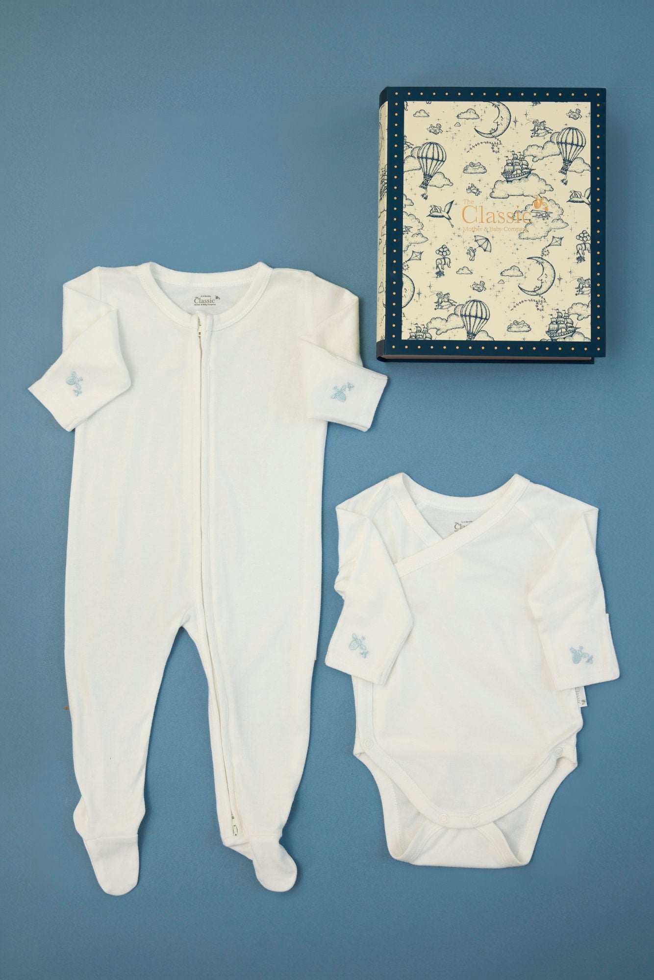 Using the softest organic fabrics, this layer currently features well known brands MORI and Emile et Rose. All bundles include at least one zip-up babygro/sleepsuit- perfect for ease in changing little ones.