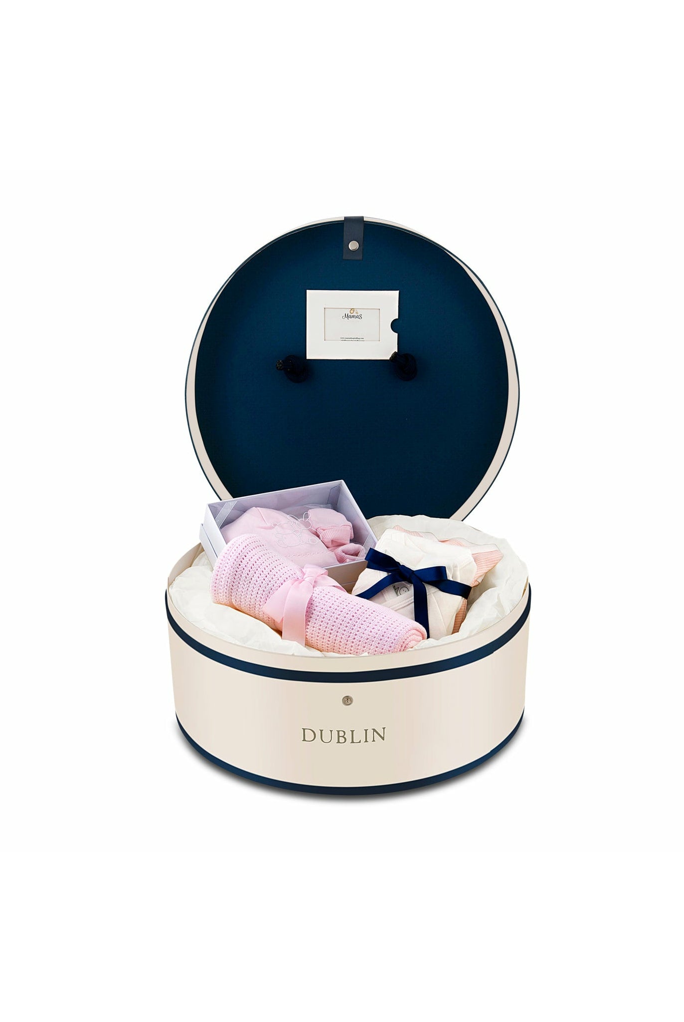 ivory Hat Box with dublin on the front - Mamas Hospital Bag Ireland