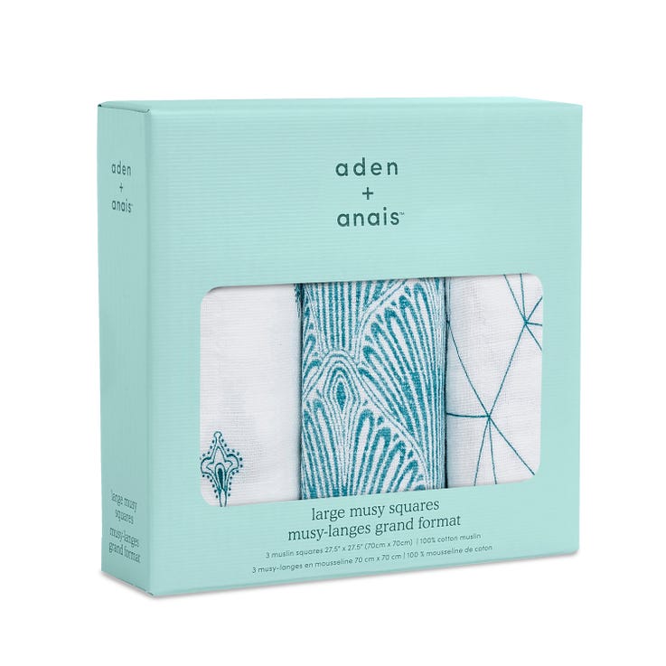 • Muslins (Aden & Anais 3 pack mini pre-washed various designs)