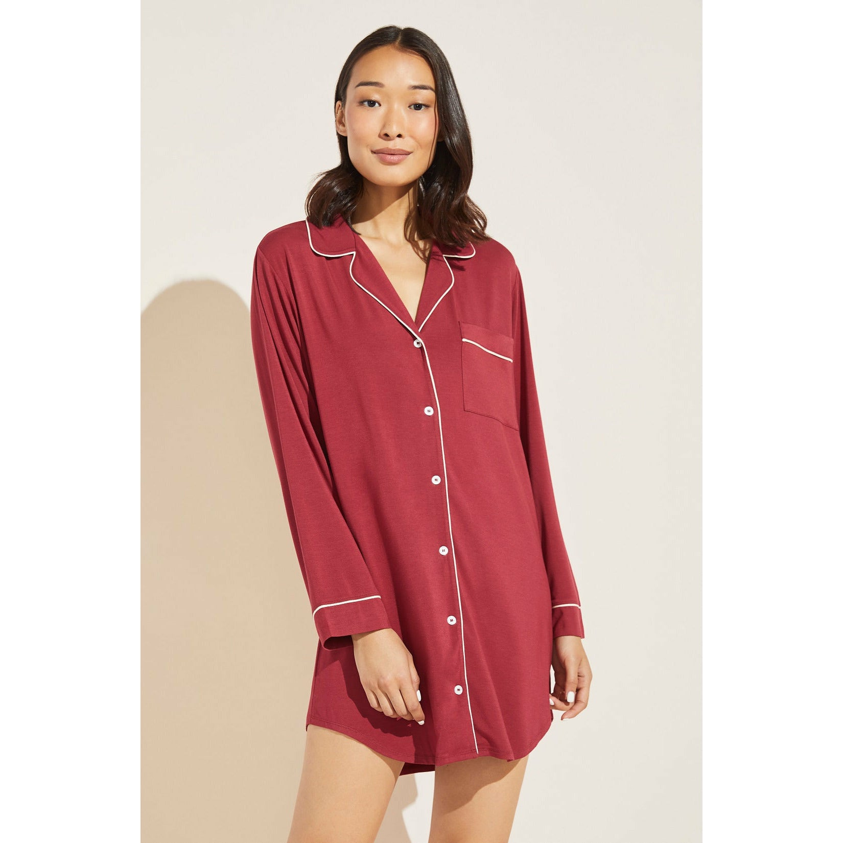 Nightdress - All nightdresses/ sleepshirts are knee-length and feature buttons down the front to accommodate breast-feeding. Our current range includes the following colours; grey (Hanro), navy (Eberjey), navy & ivory (Eberjey) and pink (Hanro).