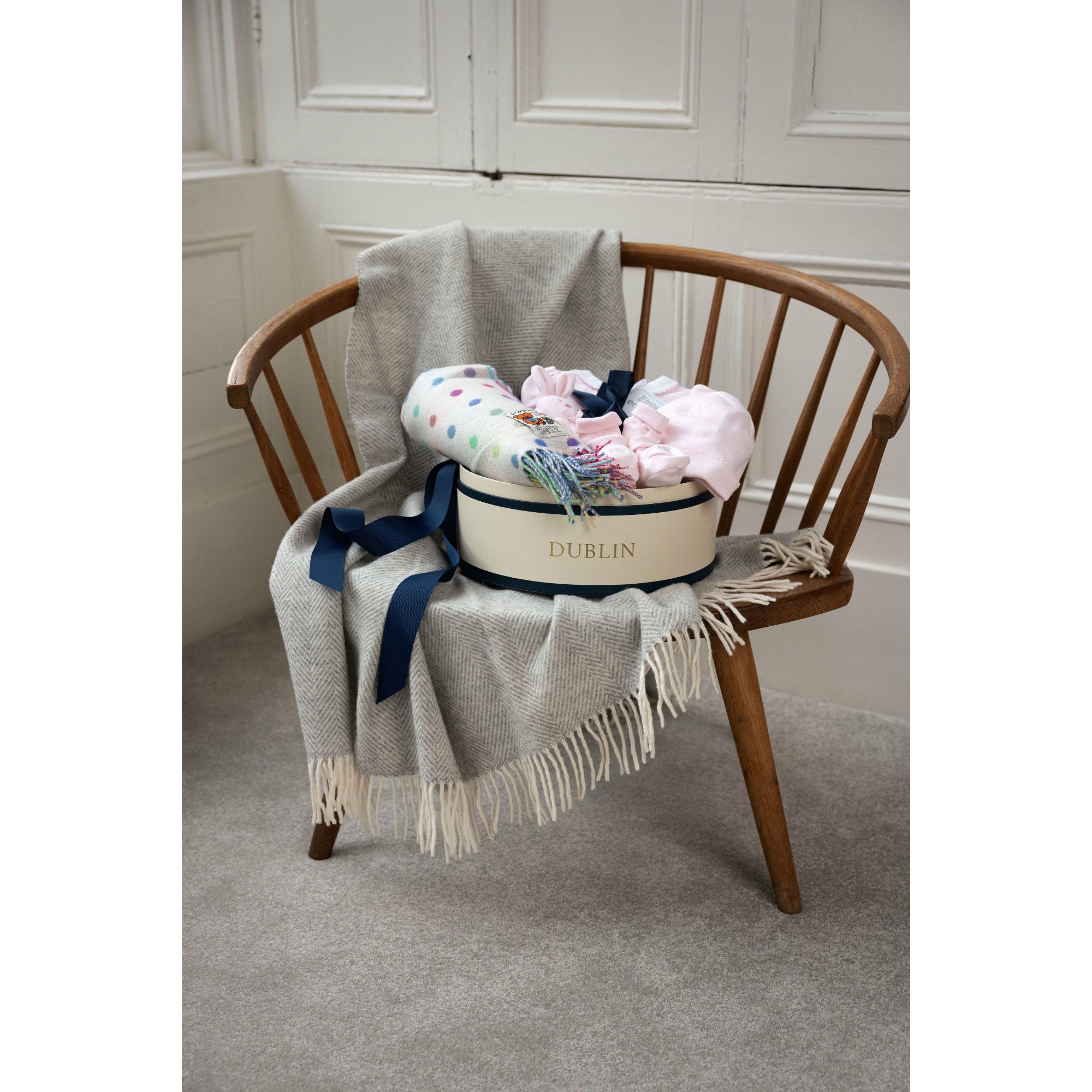 Using the softest organic fabrics, this layer currently features well known brand  Emile et Rose. We are also delighted to feature baby blankets from award winning Irish brand, Foxford Woollen Mills, which are crafted from 100% lambswool (Deluxe Bundle Only).