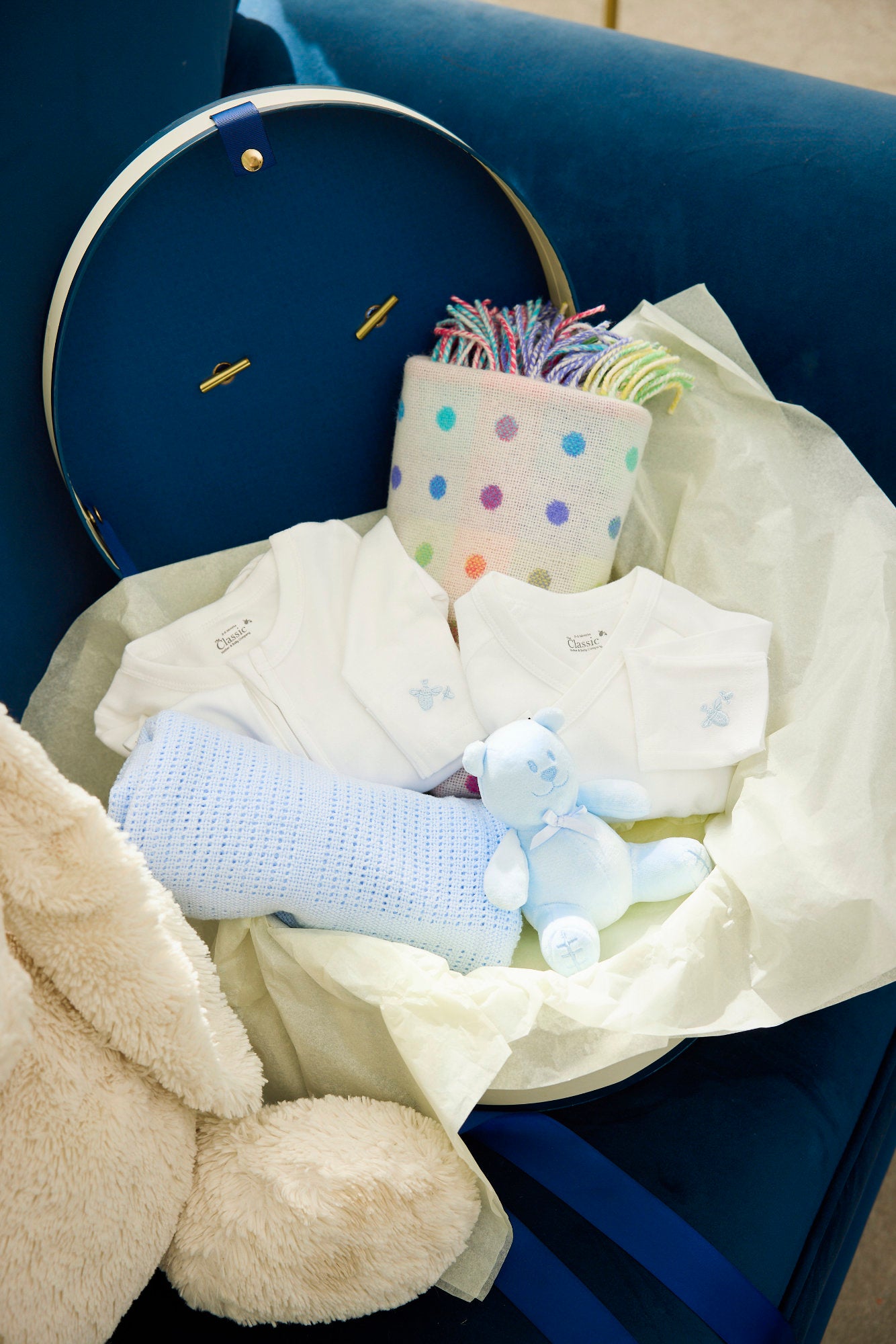 Blue Bundles - The cuddly toy, baby blanket and set will be blue. The babygro will be blue or blue and white.