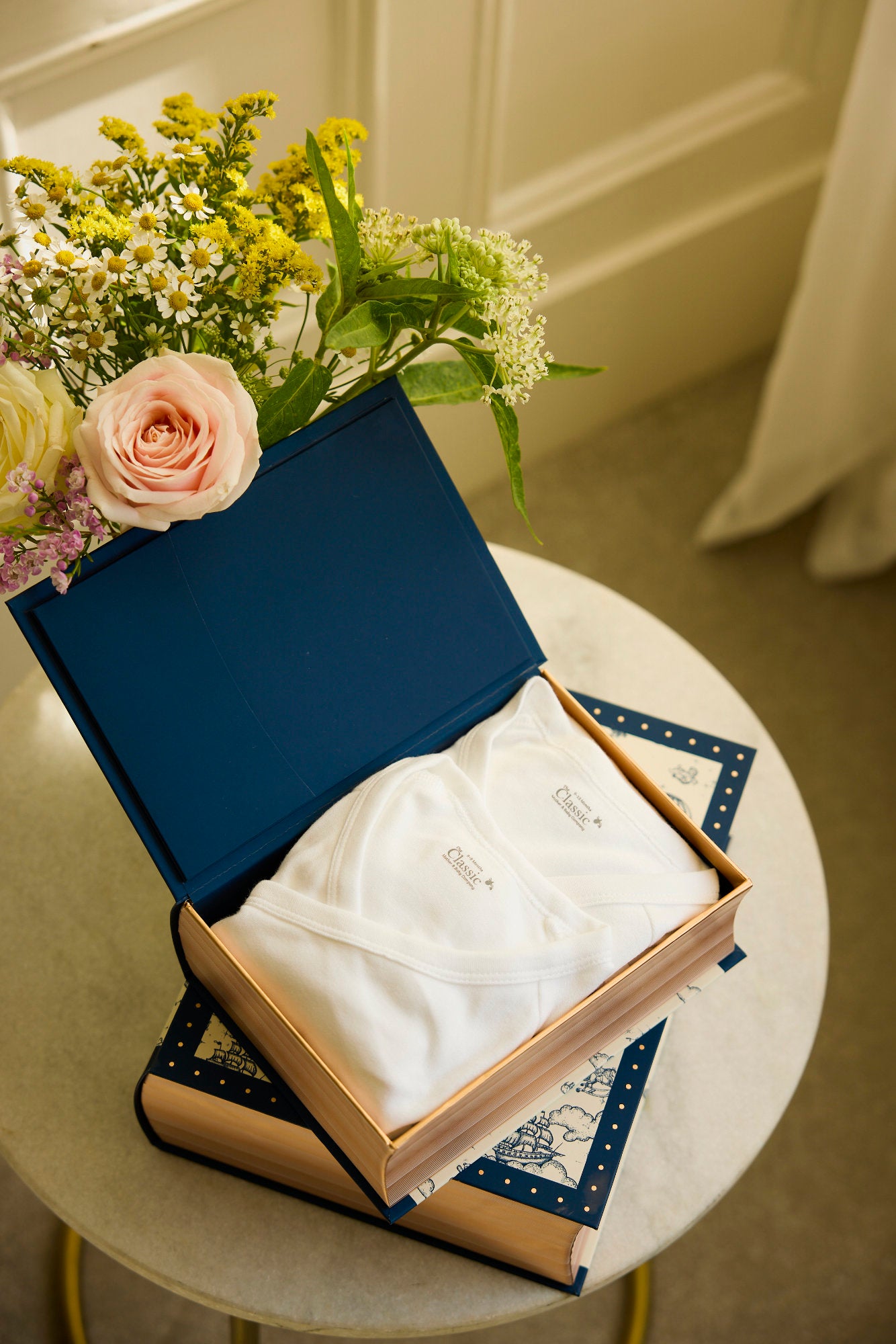 • Premium Quality – Our gifts are carefully curated and beautifully presented, featuring organic cotton & bamboo baby essentials and keepsake gift boxes inspired by classic hat boxes and storybooks.