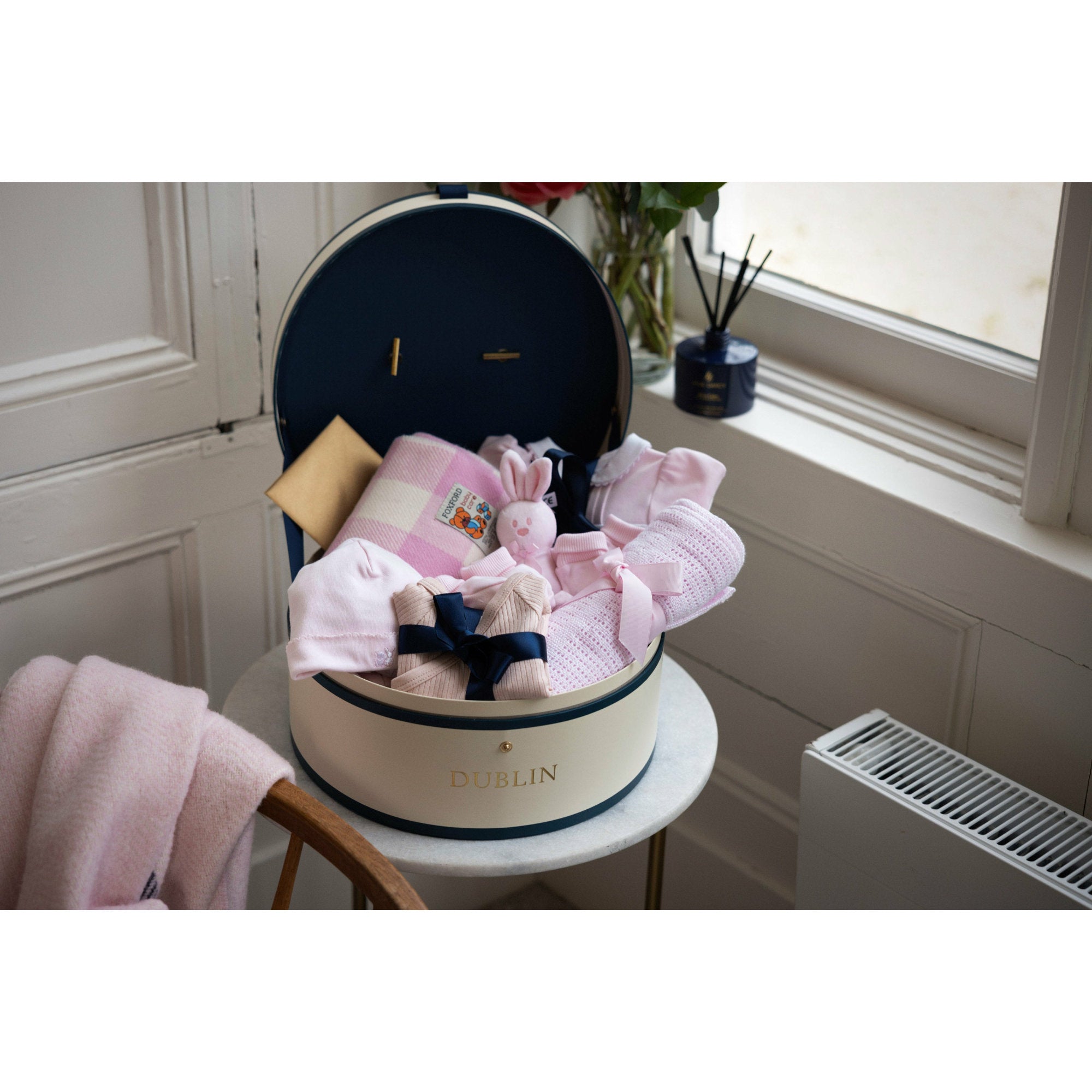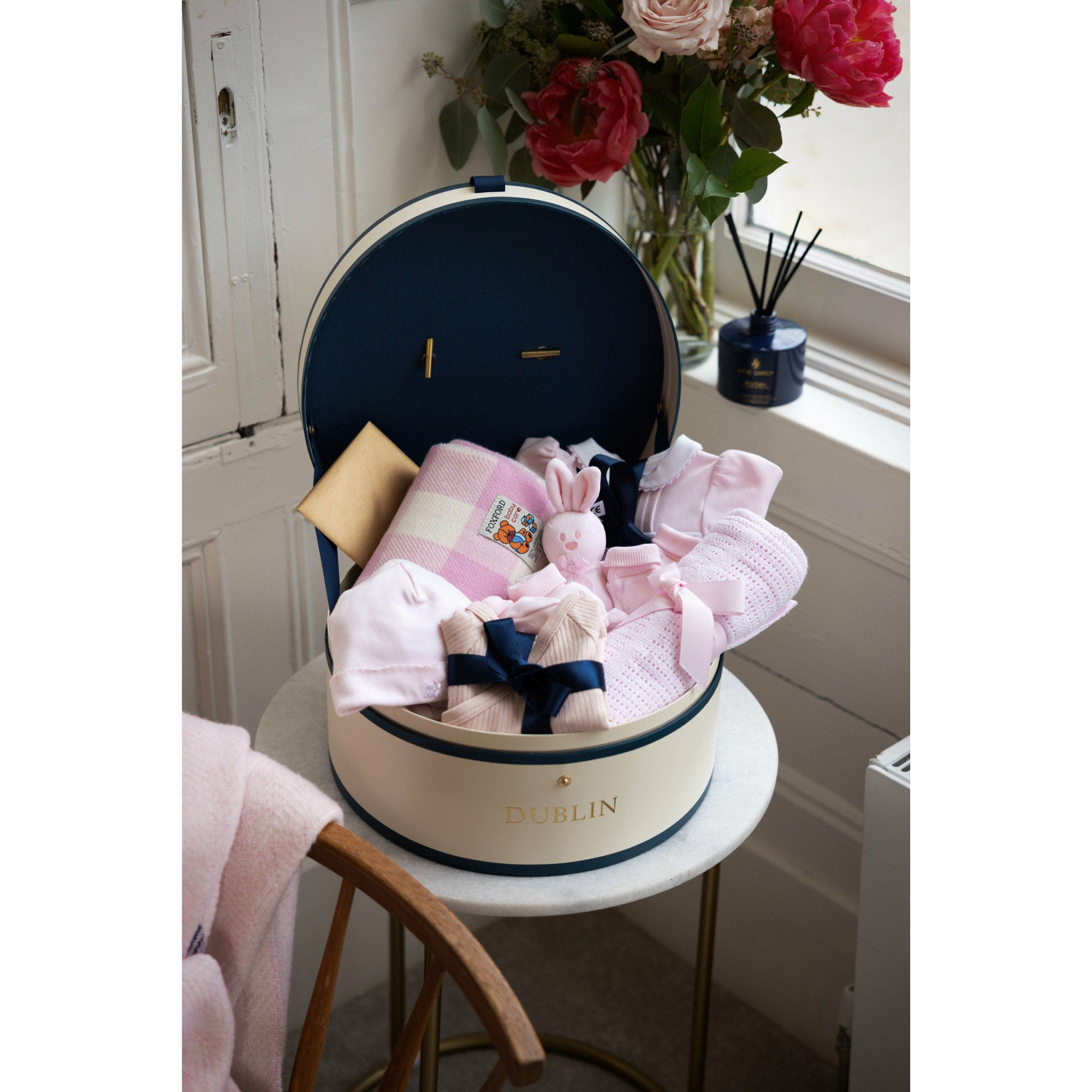 • Premium Quality – Our gifts are carefully curated and beautifully presented, featuring organic cotton & bamboo baby essentials and keepsake gift boxes inspired by classic hat boxes and storybooks.