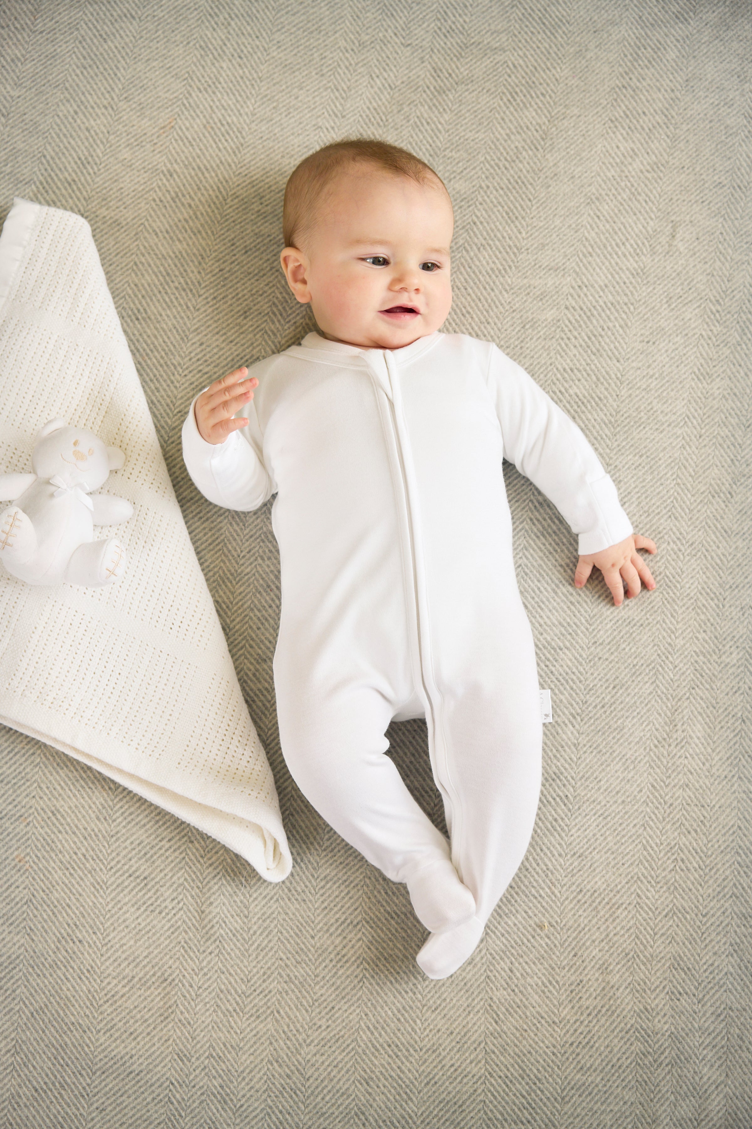 Unisex Bundles - Babygro, the set, cuddly toy and baby blanket will be white.