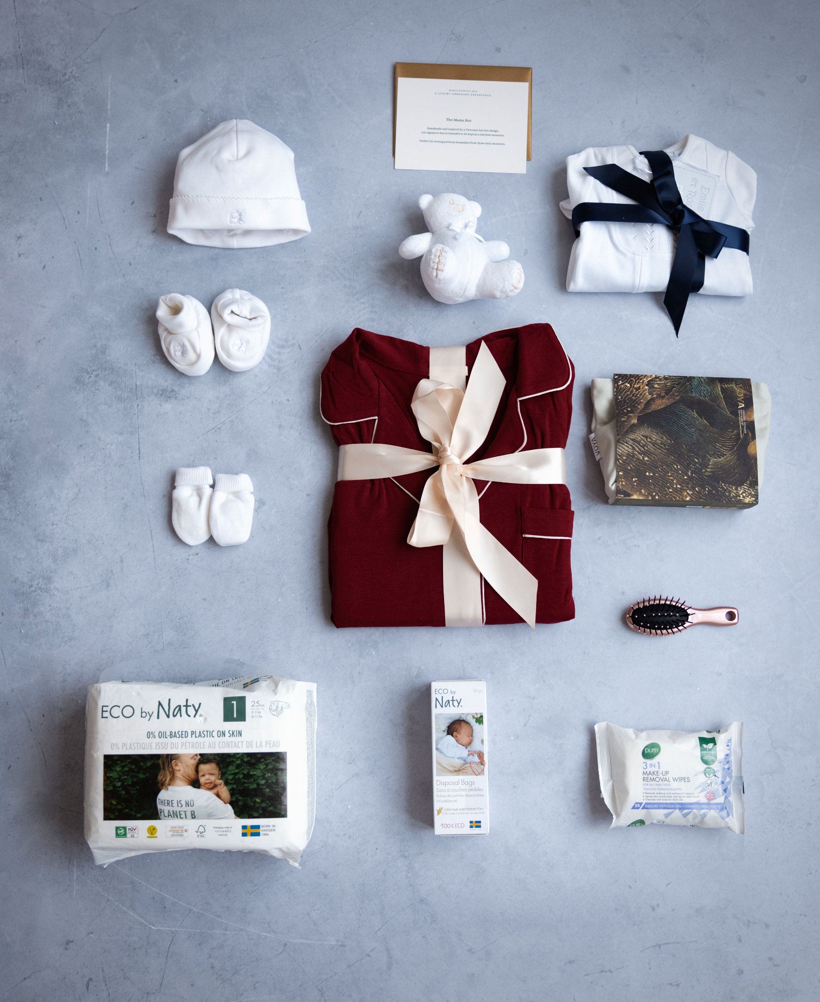 To honour our resolution to operate sustainably and minimise waste, we have run down our stock of stationary and branded collateral over the past few months to a minimum, in anticipation of our rebrand. Therefore our new name and logo will feature on these items going forward, with the exception of our signature hat-boxes. These are each handmade and bought in bulk due to the lead-time required. We will continue to use the beautiful boxes we have in stock featuring our original Mamas Hospital Bag logo for the next few months- a collectors item!